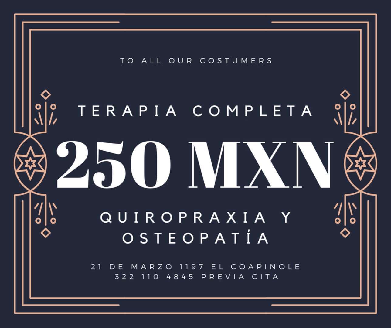Ajuste cervical Lumbalgia Hernia Discal Ciatica Coxis Piramidal Hombro Congelado Rodilla Esguince de Tobillo Menciona que viste el anuncio.