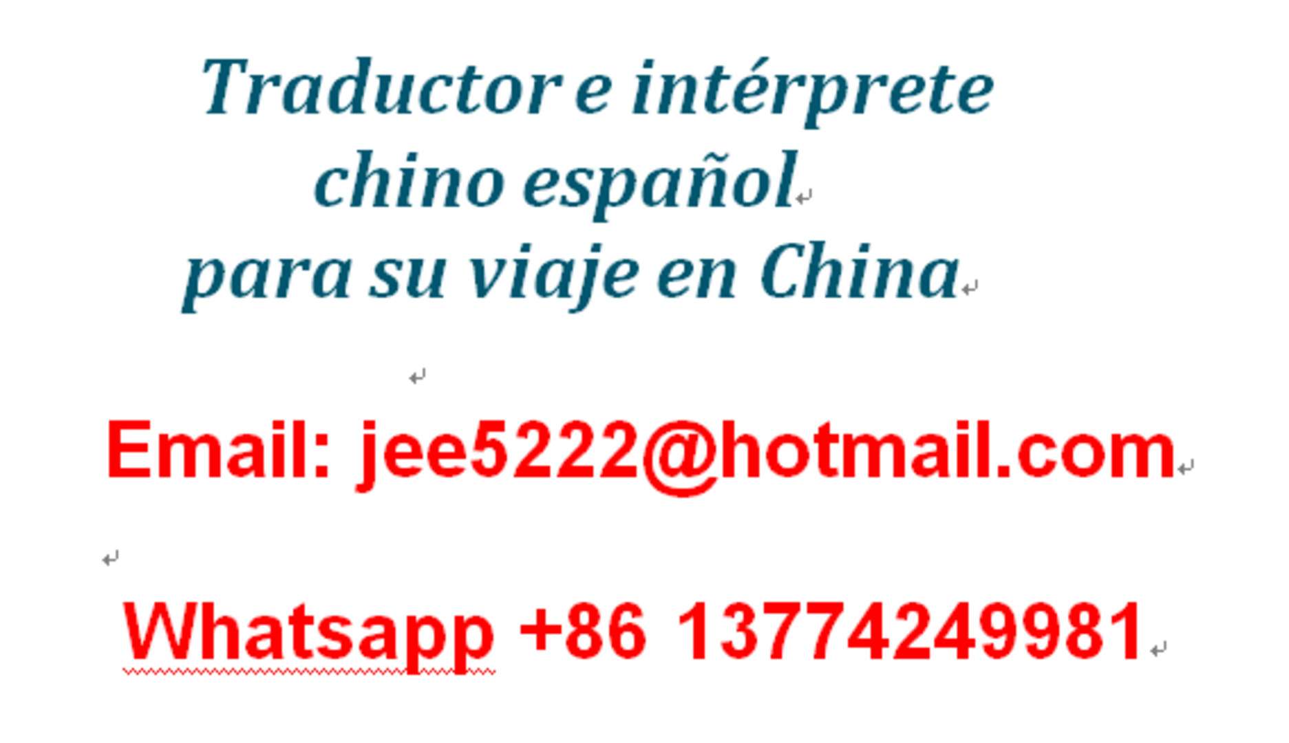 Si usted esta dispuesto para viajar a china ,no dude en ponerse en contacto conmigo ,aqui yo ofrezco dichos servicios con una tarifa razonable .