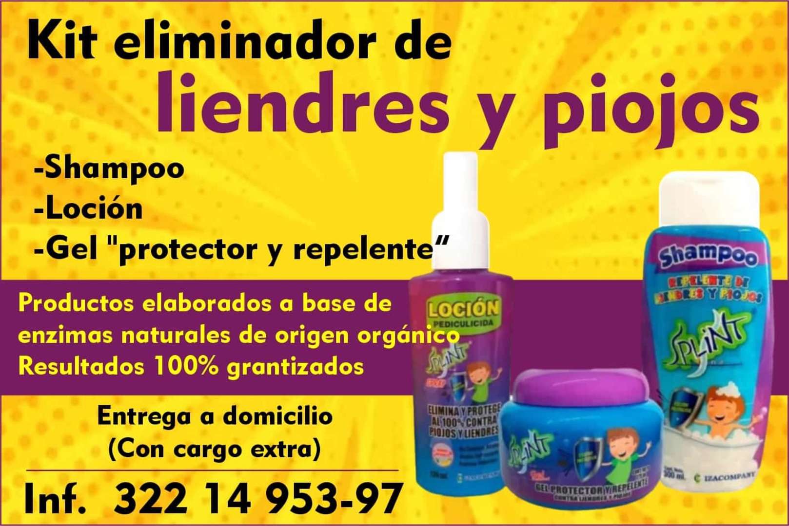 Kit eliminador deliendres y piojos-shampoo-locion-gel "protector y repelente"shampooproductos elaborados a base deoctoenzimas naturales de origen organiresultados 100% grantizadosentrega a domicilio(con cargo extra)inf. 322 14 953-97iplolosn