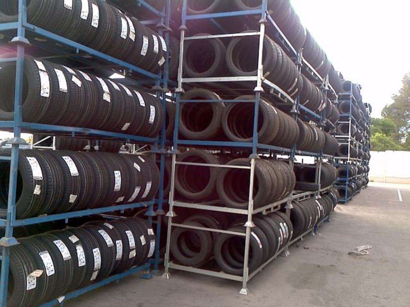 Estanterias moviles para neumaticos de 2180x1100x800 capacidad de carga 300kg usadas, se pliegan ahorrando espacio, duradero y varios usos ademas de los neumaticos.