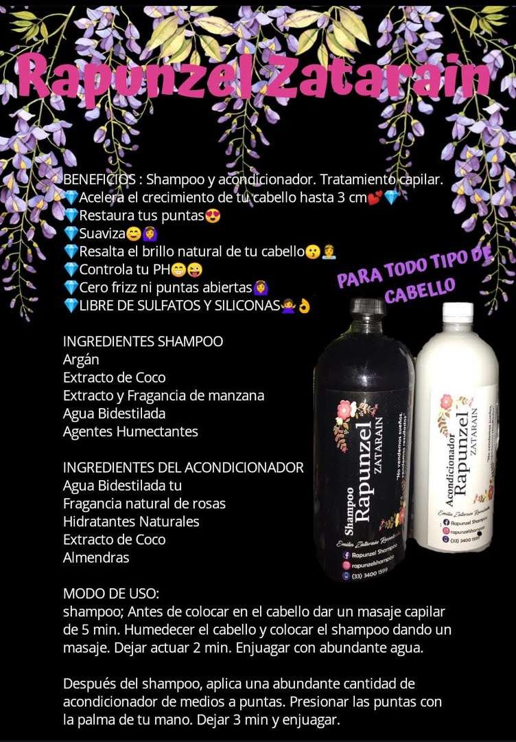 Shampoo Rapunzel Zatarain 1lt $350 Kit Shampoo y Acondicionador ambos 1 lt Tratamiento de pestanas Tratamiento de cejas Mascarilla Crecimiento Acelerado Colageno Cabello Gel natural Rizos Activos Shampoo kids Lacios perfectos Protector de Calor Productos 100% naturales, sin conservadores, sin sal, sin parabenos, libres de crueldad animal, Garantizados!