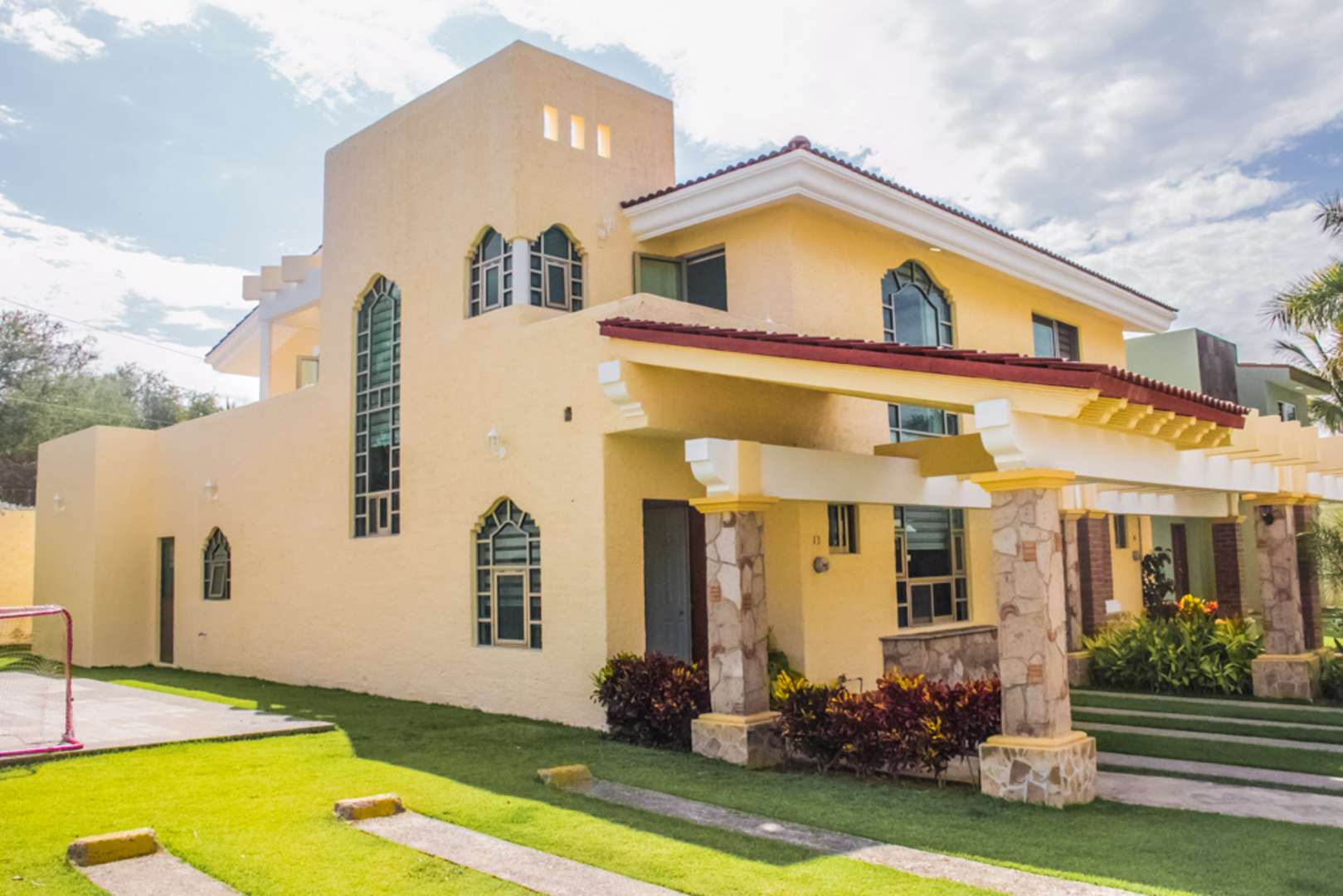 Se renta bonita casa en coto pequeno con alberca y casa club, muy cerca de la entrada a nuevo Vallarta a unos metros de la plaza lago real sobre el mismo Bvrd. Riviera Nayarit. cuenta con 3 recamaras; 2 de ellas en segundo piso con bano, vestidor y la principal con terraza mas amplia. Tambien un estudio pequeno en segundo piso. En planta baja la tercera recamara con bano completo, comedor con vista al jardin trasero y la sala con vista hacia la alberca y jardines del coto, la cocina es integral y ademas de tener cuarto de lavado tiene otro cuarto para personal de servicio, 2 lugares de estacionamiento a la puerto. En el precio de la renta esta inc. el mtto.. 3223536550 claudia