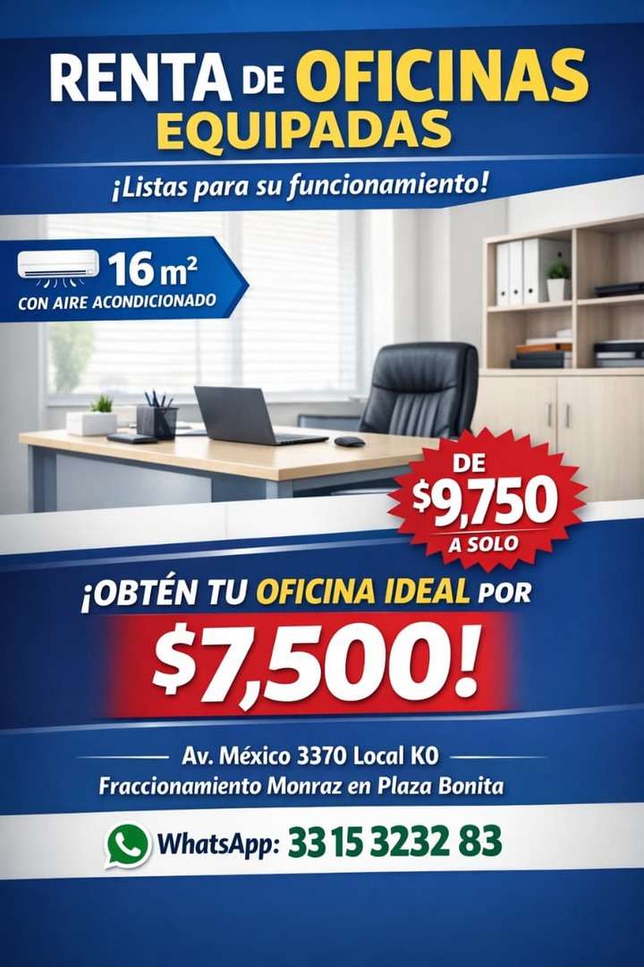 3. “Tu oficina ejecutiva lista hoy: amueblada, segura, excelente ubicación. Llama 33 1532 3283” sin tantos requisitos