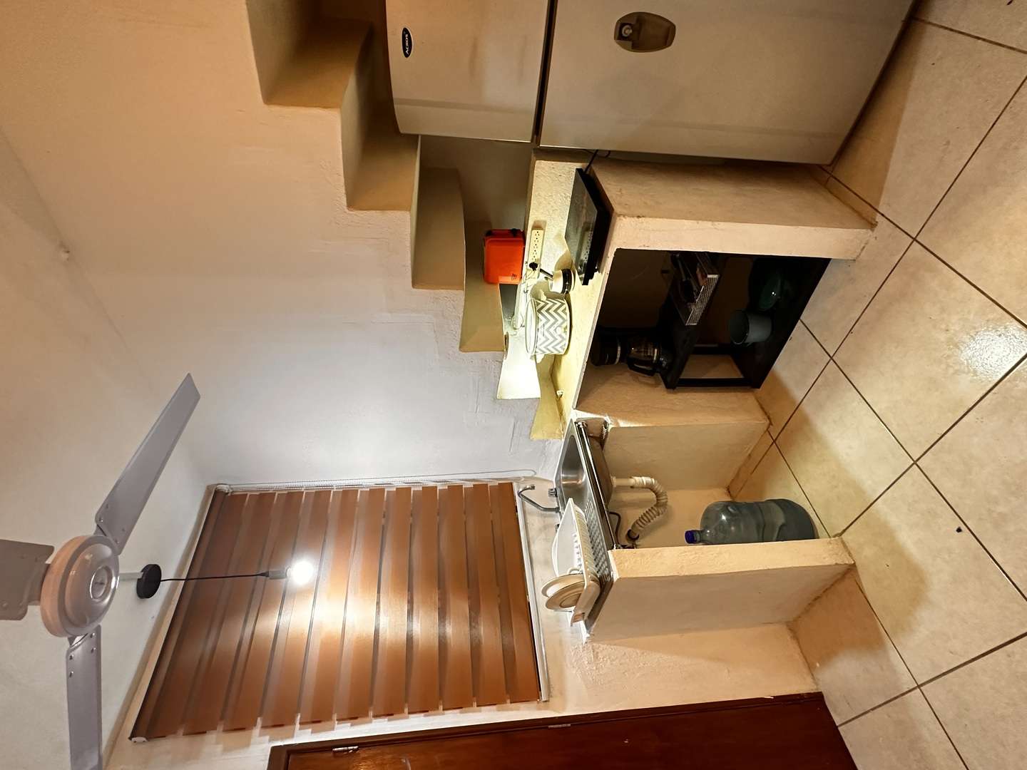 Cuenta con cocina equipada (tarja/escurridor, refrigerador con congelador, estufa de inducción de 1 quemador, cafetera, licuadora) pequeña bodega, 1 baño completo, 1 recámara con cama matrimonial y clóset abierto, cajonera y ventilador de techo, pequeño patio interior.