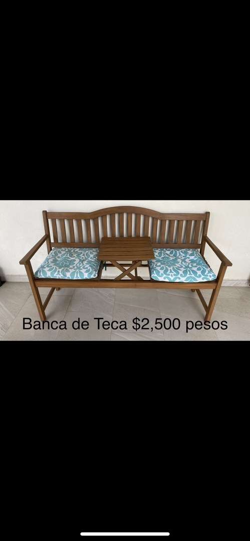 Hermosa Banca de Teca SIN cojines. (Los cojines se venden aparte) Comprador recoge mercancía.