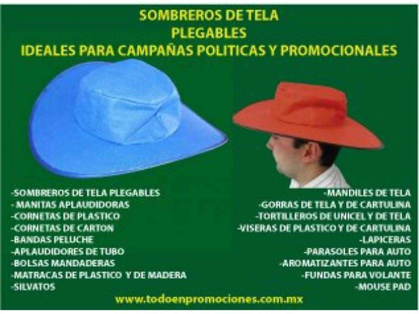 SU ATRACTIVO DISENO ATRAE MAS LA ATENCION QUE UNA GORRA, SON MAS IMPACTANTES PARA MITINES, EVENTOS, CONVENCIONES, ACTIVACIONES Y COMO REGALO PROMOCIONAL.