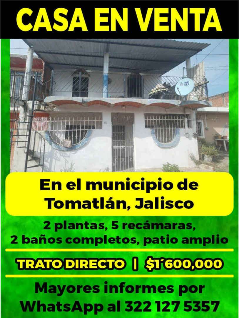 CASA EN VENTA En el municipio de Tomatlán, Jalisco 2 plantas, 5 recámaras, 2 baños completos, patio amplio TRATOPIRECTO $1,600,000 Mayores Informes por WhatsApp a1322127 5357